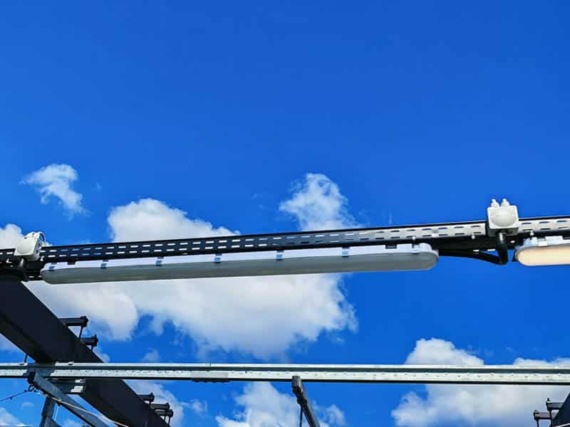 Pour les zones secondaires et l’éclairage de construction, une variété de lampes de construction FL14 ont été utilisées sous forme modifiée pour ce projet (7114s).