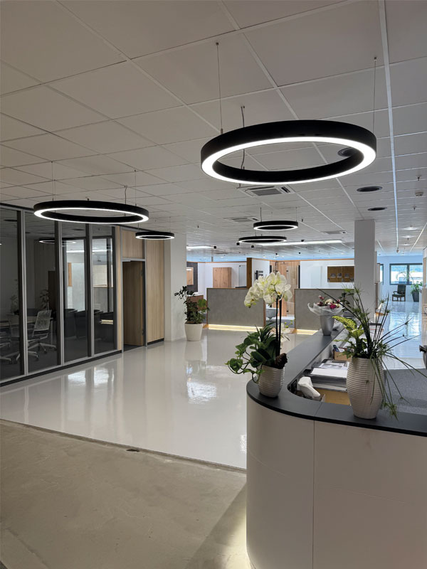 Nous présentons intelligemment la zone d’entrée nouvellement conçue avec une lampe annulaire en aluminium de type rp7 de 3 diamètres différents (1240mm, 980mm, 770mm).