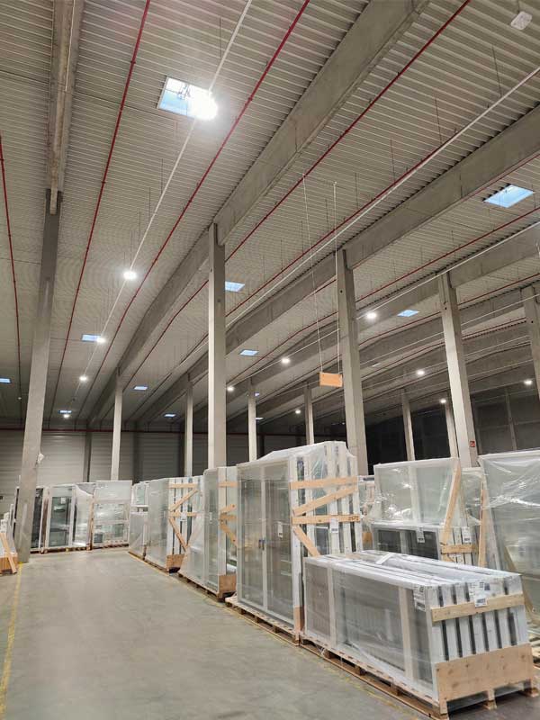 C’est pourquoi on a décidé de remplacer les lampes classiques des halls logistiques par des lampes LED avec des capteurs intelligents.