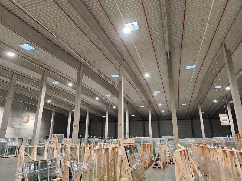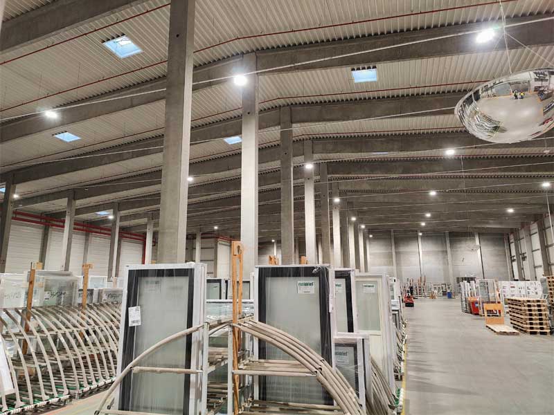 Les luminaires de la forme HT95 avec un capteur séparé ont été utilisés. Le capteur répond à la fois à l’intensité de la lumière ambiante et à la présence d’employés.