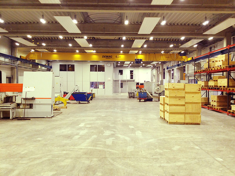 Dans le cadre de la rénovation des sites de production, l’éclairage a été transformé en éclairage à LED à économie d’énergie. Les lampes LED 6550 ont été utilisées, qui, grâce à la technologie innovante des lentilles, créent une distribution presque complètement homogène de la lumière et assurent ainsi un éclairage optimal des surfaces de production.