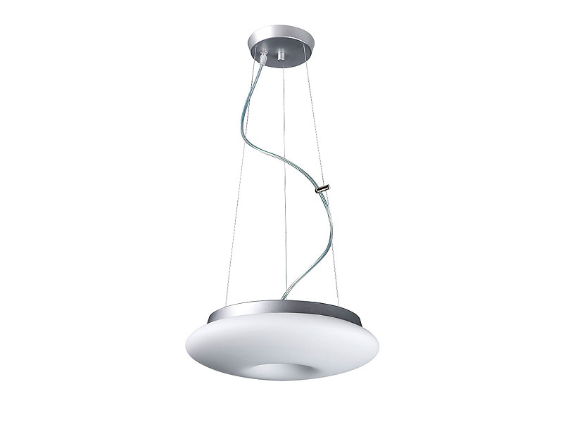Plaque de support en tôle d’acier. Système optique en verre opale triplex de haute qualité. Grâce au système optique tiré loin autour du bord de la lampe, la lampe a un angle de diffusion extrêmement large qui génère même une faible proportion de lumière indirecte.
