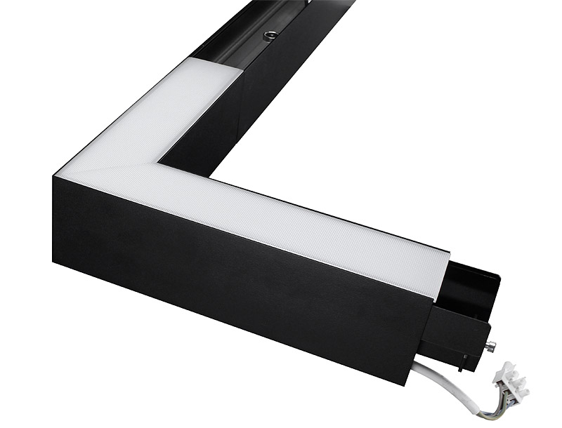 Profil en aluminium configurable individuellement suspendu ou pour le montage direct au plafond. Connexion simple des différentes pièces profilées. Fixation des supports d’appareils à l’aide d’un système magent. Couverture microprismatique jusqu’à 20m d’une pièce pour éviter les bords de choc à l’intérieur du système optique.