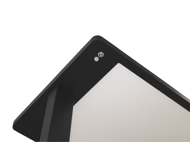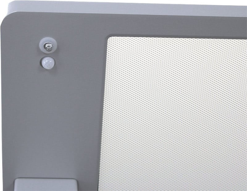 Le système de capteur de l’éclairage est installé dans la tête d’éclairage plate (hauteur de construction 21,5 mm). Il présente une plage de saisie de 325° dans un rayon d’environ 3 m. Les paramètres du capteur sont effectués via le panneau tactile situé au pied de la lampe. En plus de la commande du capteur, l’éclairage est également dimmable manuellement via le panneau tactile. Le détecteur de présence qui peut être activé en option est préréglé à 15 minutes.